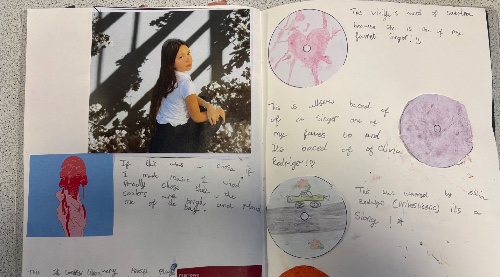 In art, we have been editing photos to design and album cover. We then researched different vinyl designs and had a go at designing our own. We used pastels, watercolours and colouring pencils to see which worked the best. Look at our fabulous sketchbook pages!