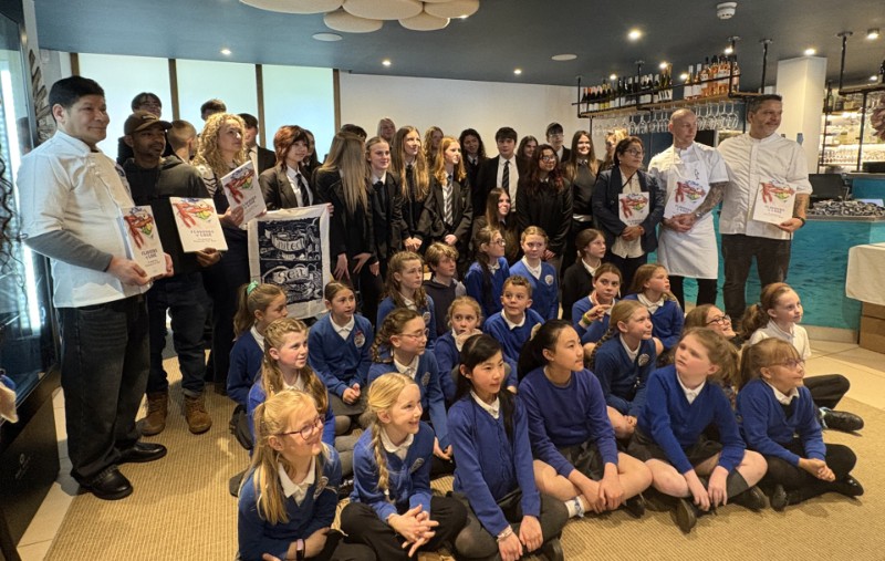 GSCE art students from Looe Community Academy have worked through the Creative Looe team, and together with a number of professional chefs and producers to create recipes and link them with art to bring together a beautiful selection of recipes and art in a book for all to share. It also has a recipe and a message from her Majesty the Queen.