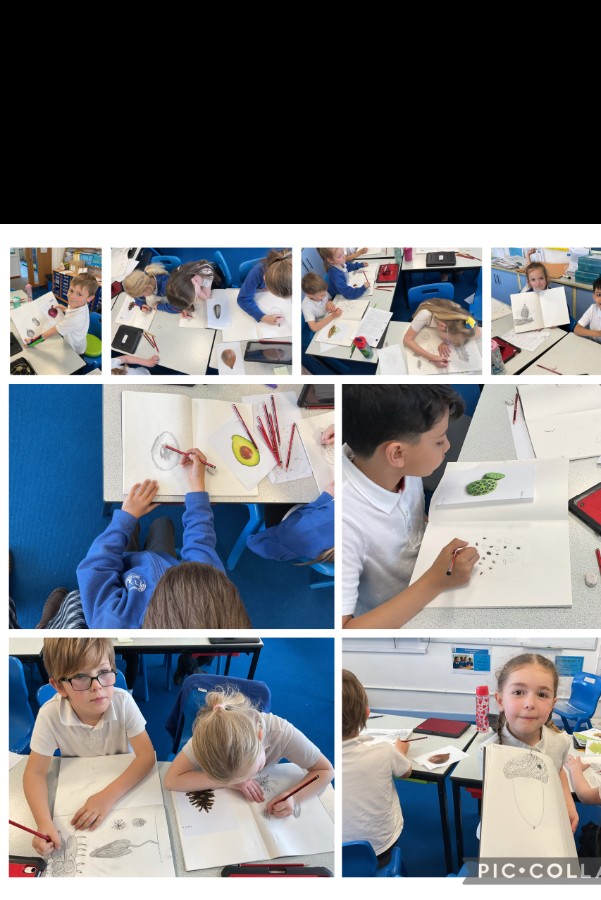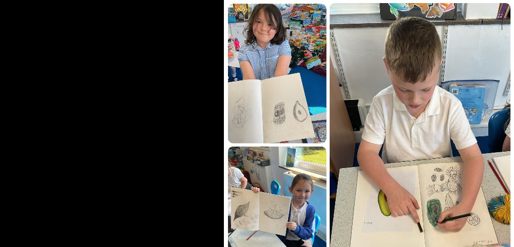 In art, the children revisited and showcased the skills they developed last term in observational drawing. They practised sketching shape, adding tone through shading, experimenting with cross-hatching, and using mark making to create patterns. It was fantastic to see their growing confidence and attention to detail.
