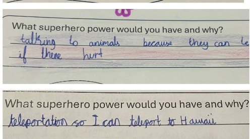 Today we started with some icebreaker questions. This helped me to get to know the children and I was intrigued and interested with some of their answers. Please see the photos for some of my favourites.
