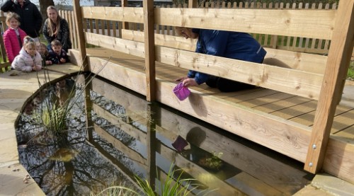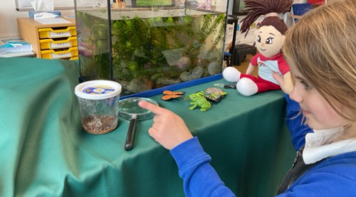 We also enjoyed exploring our school pond. During our visit, we released our class newt and some tadpoles so they could live in their natural habitat. The children were very gentle and excited to watch them swim away into the pond.