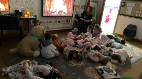 The highlight of the week came on Thursday evening, when the children returned to school for a very special bedtime story event. Dressed in their pyjamas and bringing along their teddies and blankets, the children enjoyed a cosy and snug classroom atmosphere. Mrs Grinsted, Mrs McIntyre and Mrs Orchard shared a selection of new and favourite stories, while everyone relaxed with a hot chocolate and a biscuit.