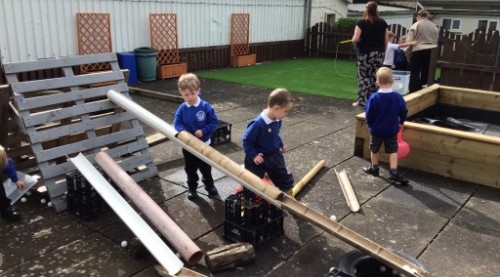 Our outside learning area has been full of excitement, with the large construction equipment being put to excellent use. We've seen an aeroplane and even a mansion created this week - fantastic teamwork and imagination!